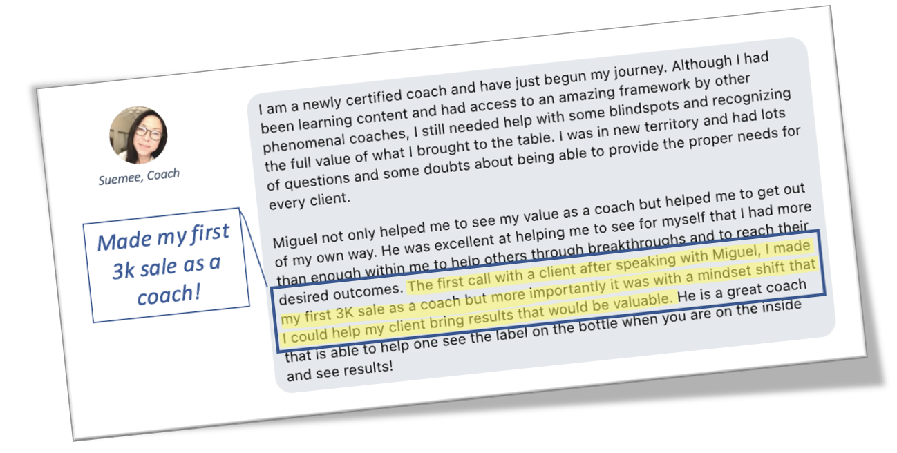 I was blessed to learn a lot from these mentors, and I spent a year hiding behind more training. But I can confidently say that I never made a single dollar from Ads, Podcasts, Books, Webinars, Challenges, Blogs prior to making my first 6 figures as a coach. Clients invested $5K+ to work with me as a Business/High Performance Coach, many with several renewals lasting months or even over a year.